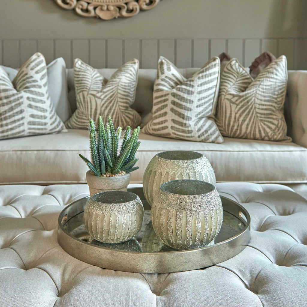 Add a touch of sparkle and glamour to your interior with our glimmering Antique Tealight Holder. Why not complete the look by acquiring the medium and large tealight holders to make a perfect set to display which will be sure to enhance the ambience of any room.