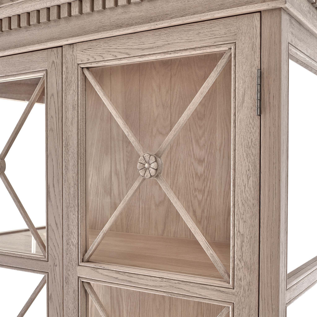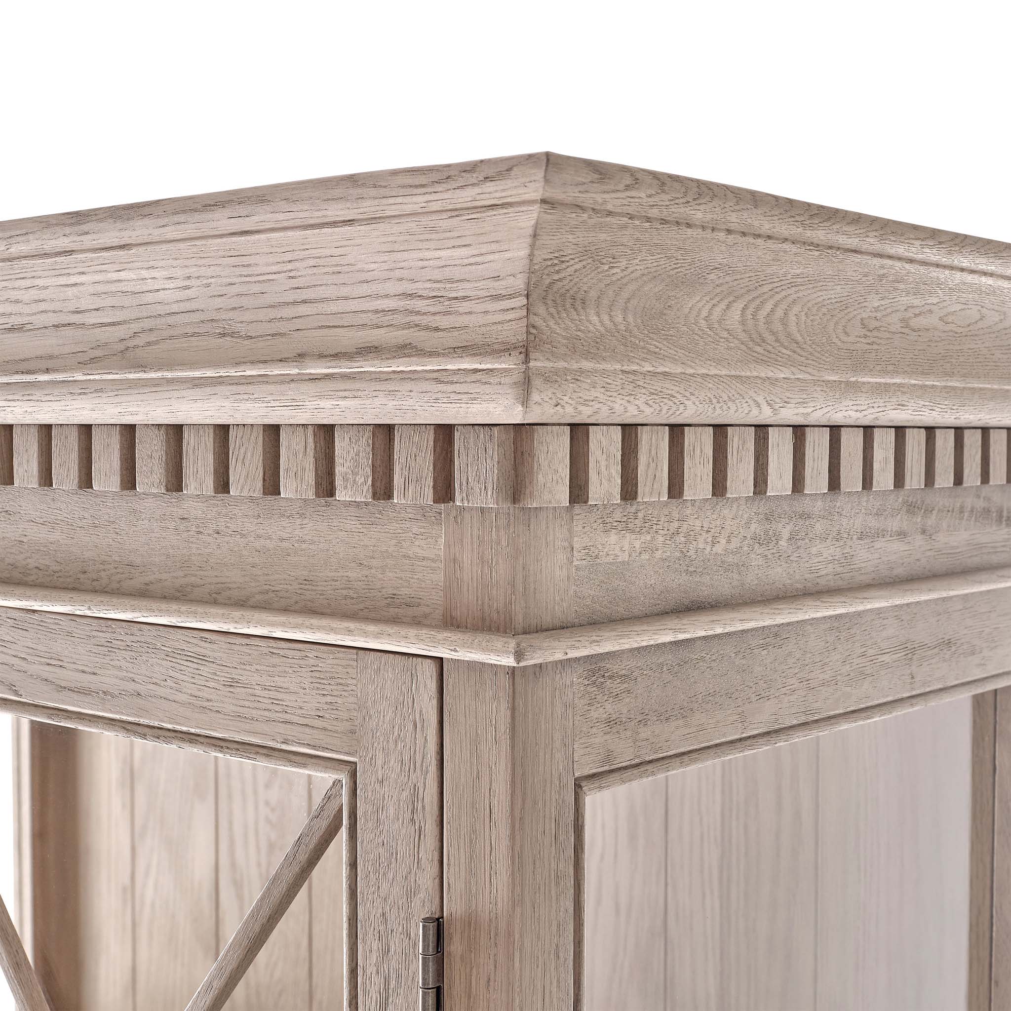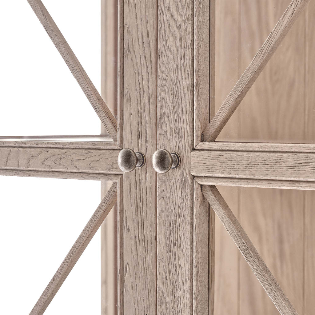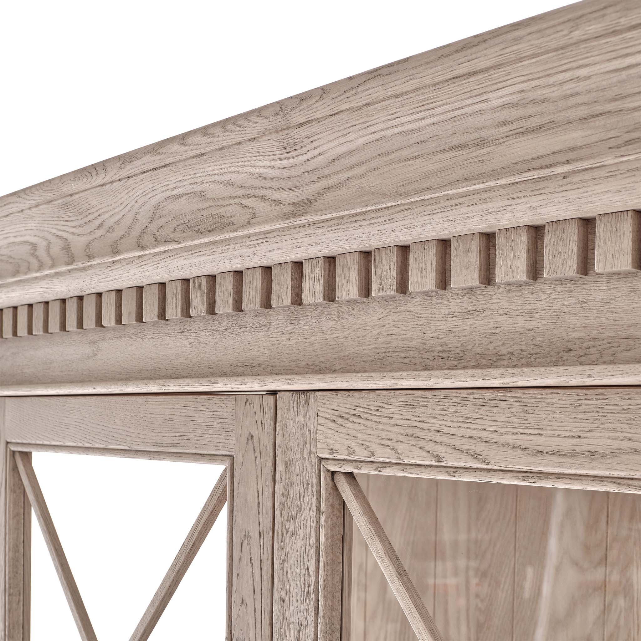 - This display unit has been lightly wire-brushed to enhance the grain of the wood, giving it a more pronounced appearance and highlighting the unique texture of the oak.