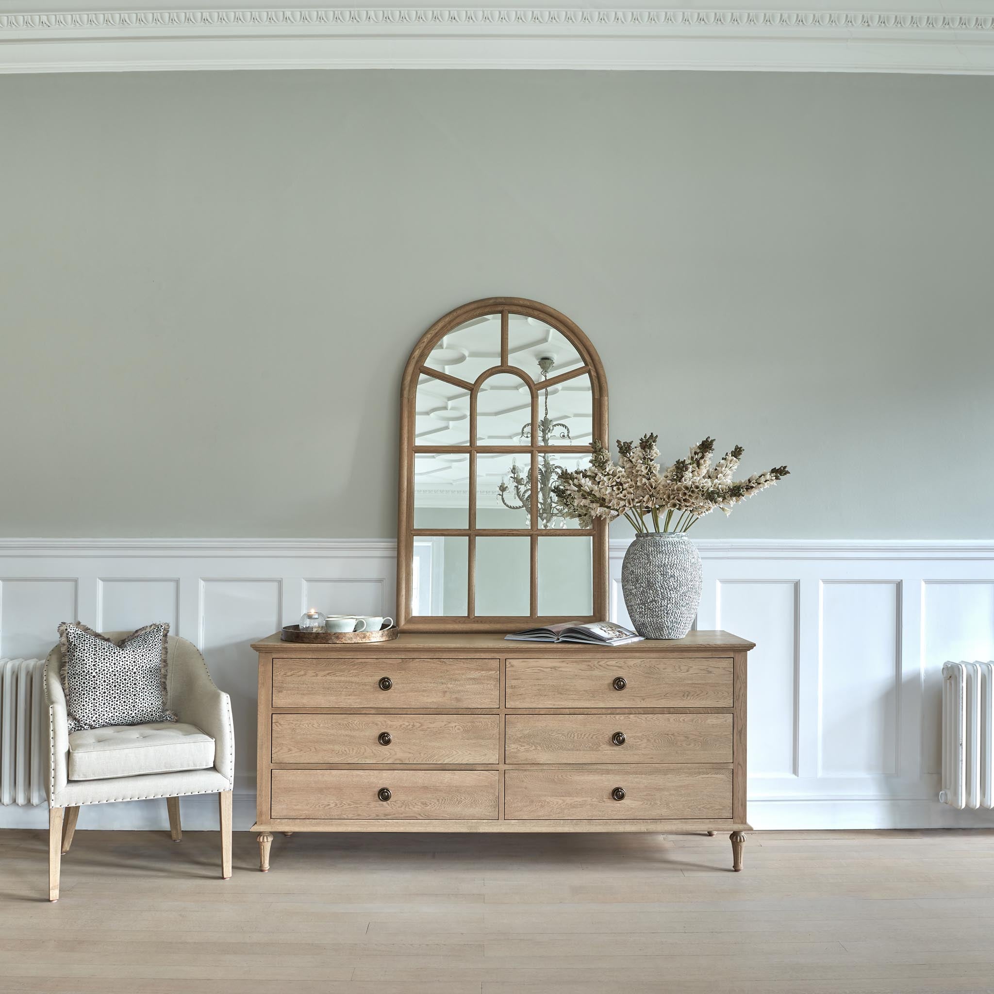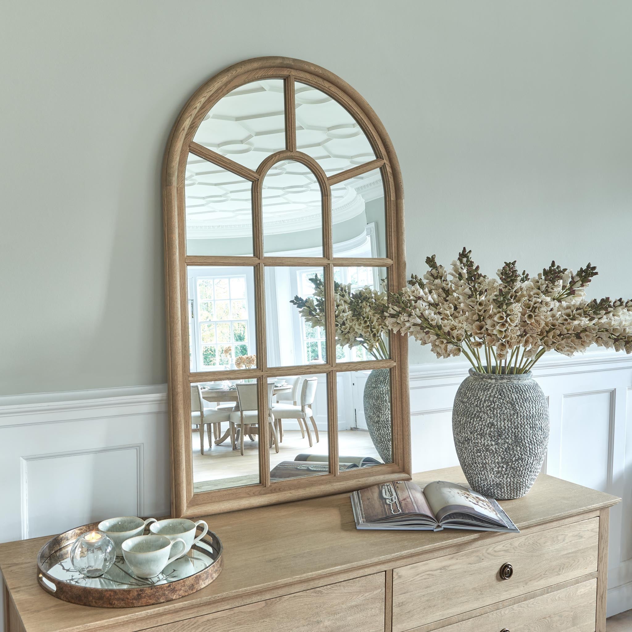 Our beautiful Weathered Oak Window Mirror takes inspiration from traditional arched window designs, crafted from our signature weathered oak for a timeless, natural finish. The graceful arch and refined framework create a sense of light and space, making it a stunning feature for any interior. Whether placed in a hallway, above a console, or as a statement in a living room, this mirror adds depth and warmth with its soft, rustic tones. Built from solid wood, it carries a reassuring weight and quality that reflects true craftsmanship and enduring style.