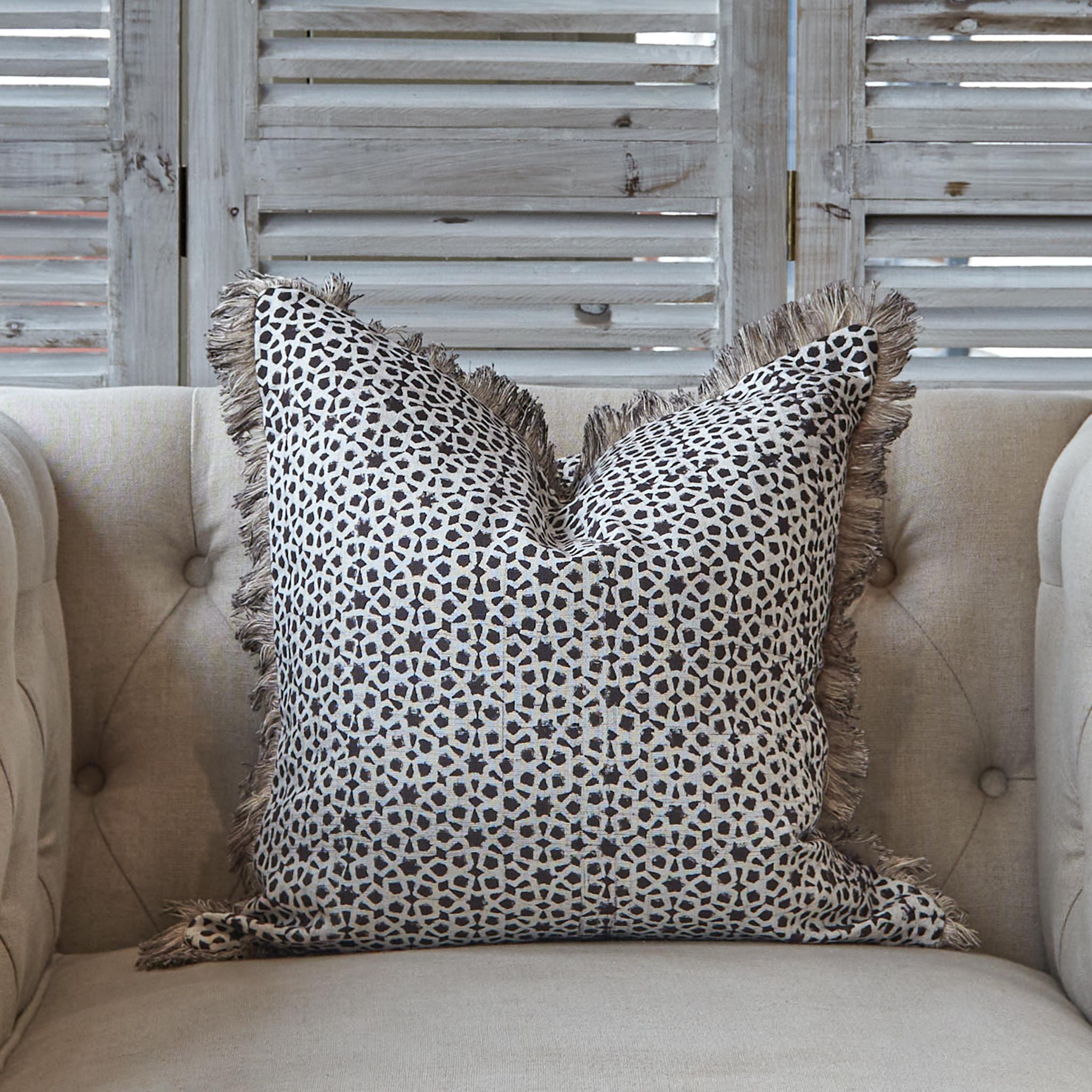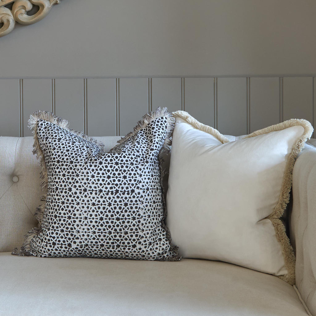 Featuring a soft block print in warm mocha tones, this cotton cushion adds subtle pattern and texture to any space. Its neutral palette makes it easy to style anywhere in your home. Please note, due to the handcrafted nature of these cushions, slight variations in pattern may occur and are part of their unique character and charm.