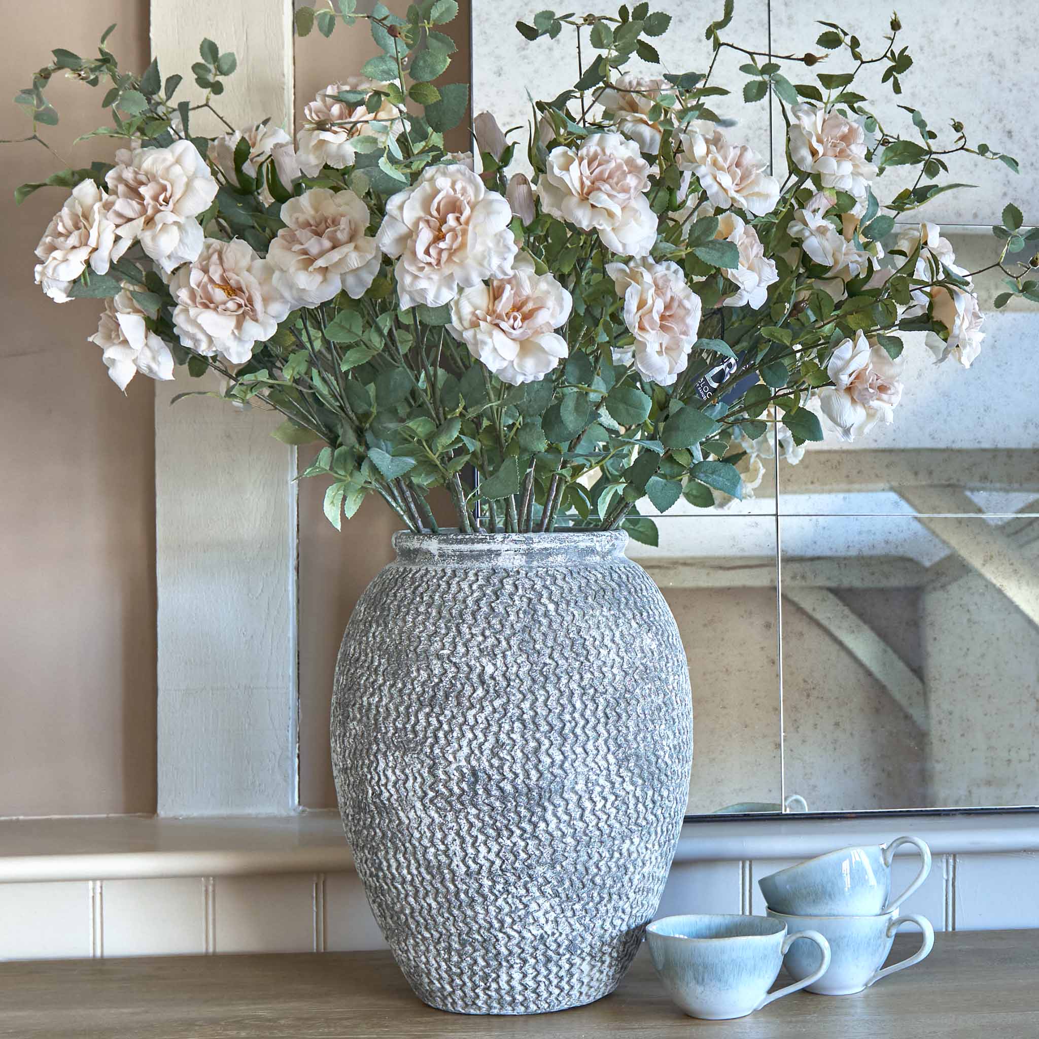The Rosa Marie Antoinette Faux Flower Stem adds a touch of elegance to any space with its stunning, lifelike design. Standing at 93cm tall, this timeless faux rose captures the enduring beauty of classic blooms, offering a timeless charm that never fades. Its beautifully crafted petals and delicate detailing replicate the natural texture of a fresh rose, making it an ideal addition to any floral arrangement or a sophisticated statement piece on its own. With its graceful appearance and everlasting quality, it brings refined sophistication to your home decor—without the need for upkeep or worry about wilting.