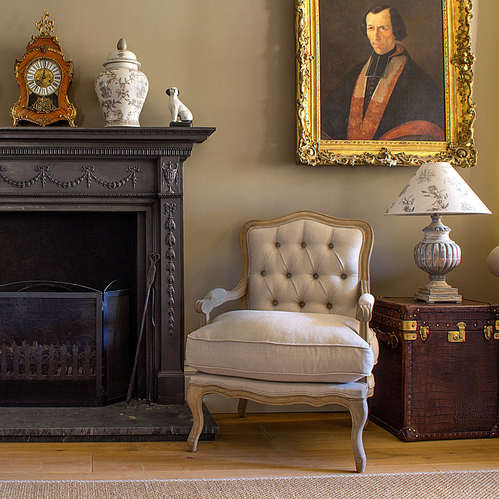 French Style Buttoned Louis Chair - Oatmeal Linen