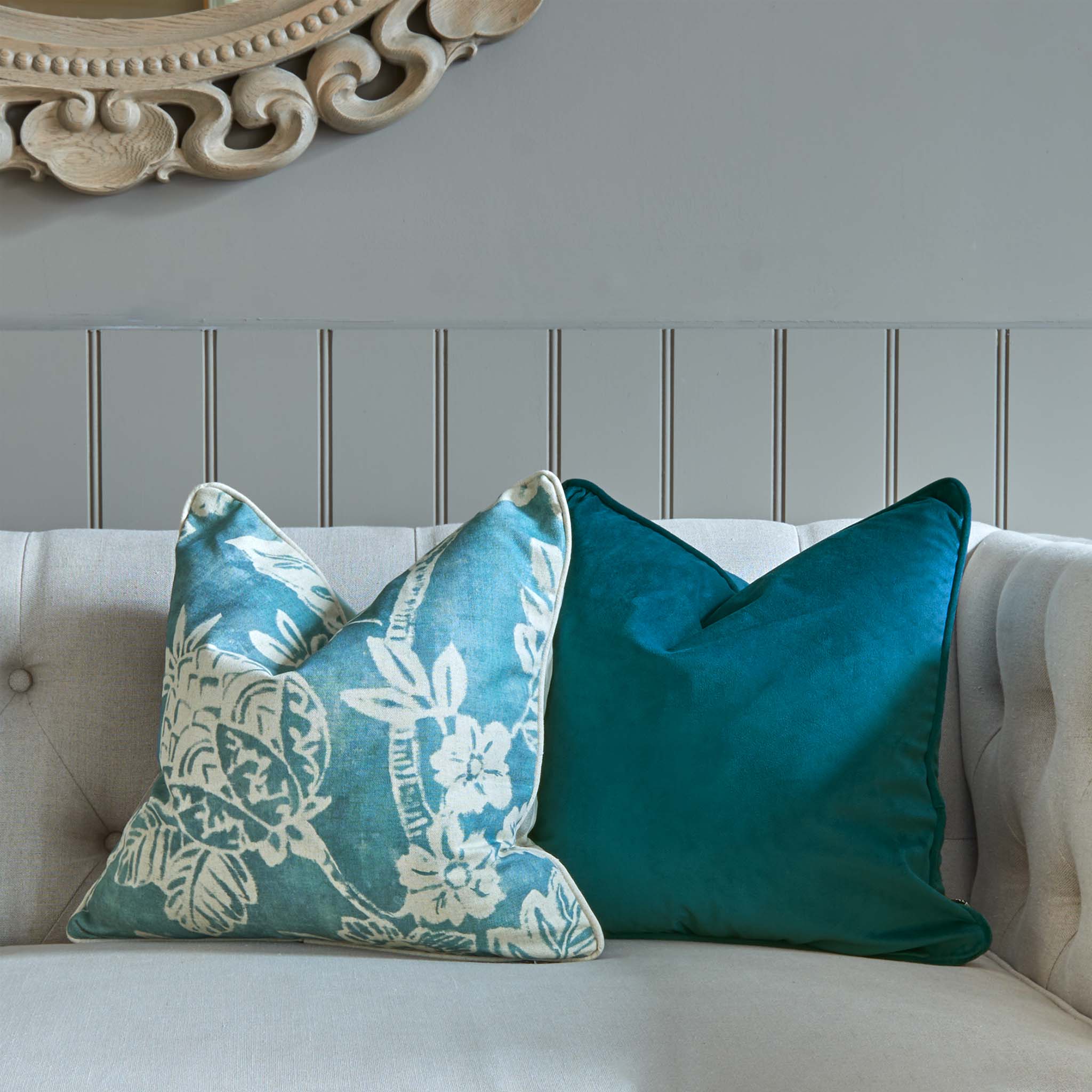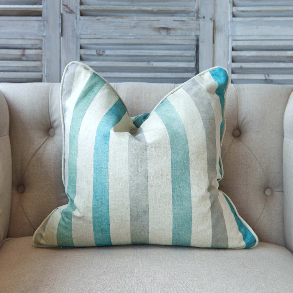 La Residence Interiors introduces you to our fun, vibrant and statement Barcelona Teal Cushion! Adding a splash of excitement and versatility to your home, it also has a reversible striped pattern on the back. This eye-catching design is definitely going to steal the show from your collection.