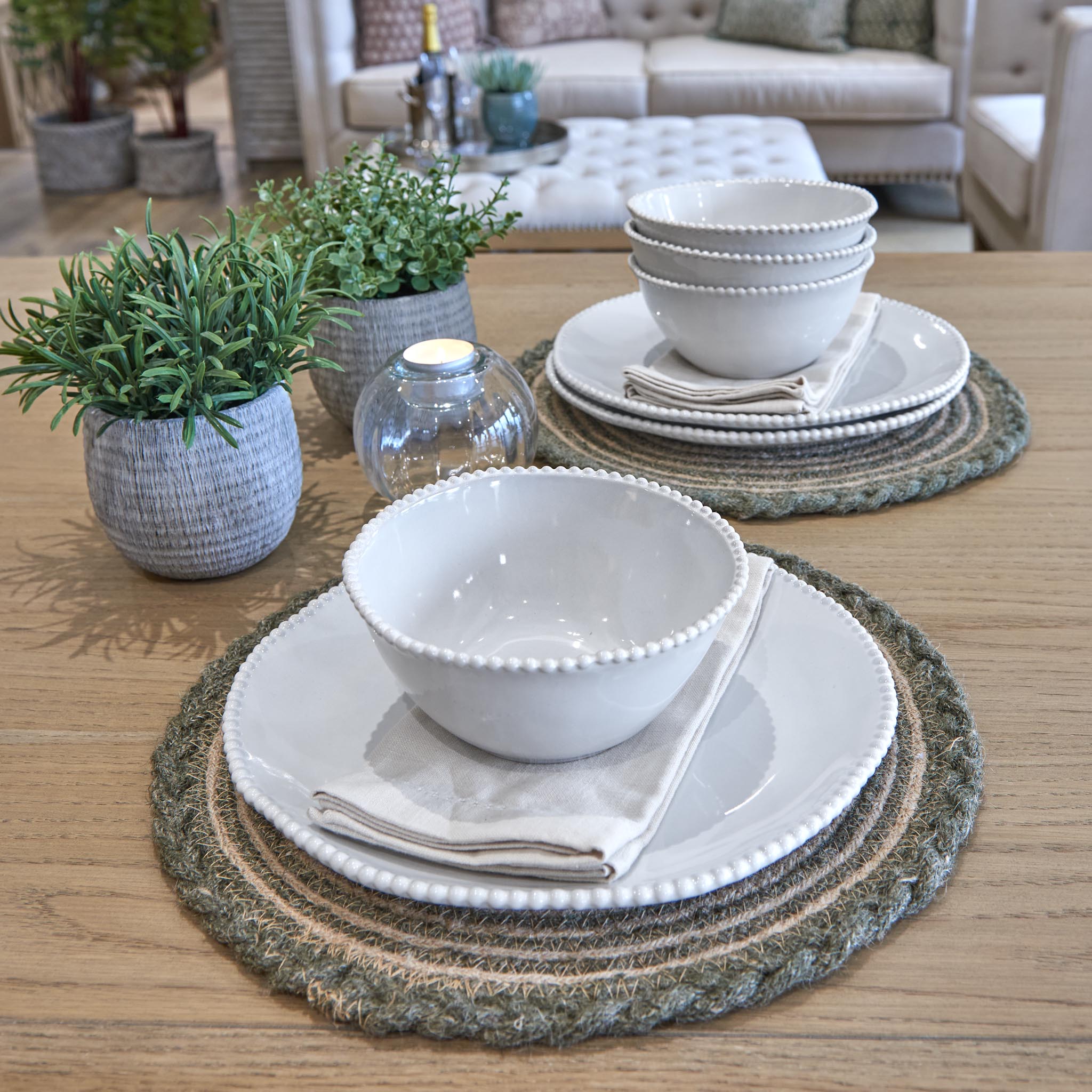 This set of four plates showcases a unique design with softly organic shapes and delicate beaded edging. Perfect for everyday use or special occasions, these plates also coordinate beautifully with matching pieces from the collection.