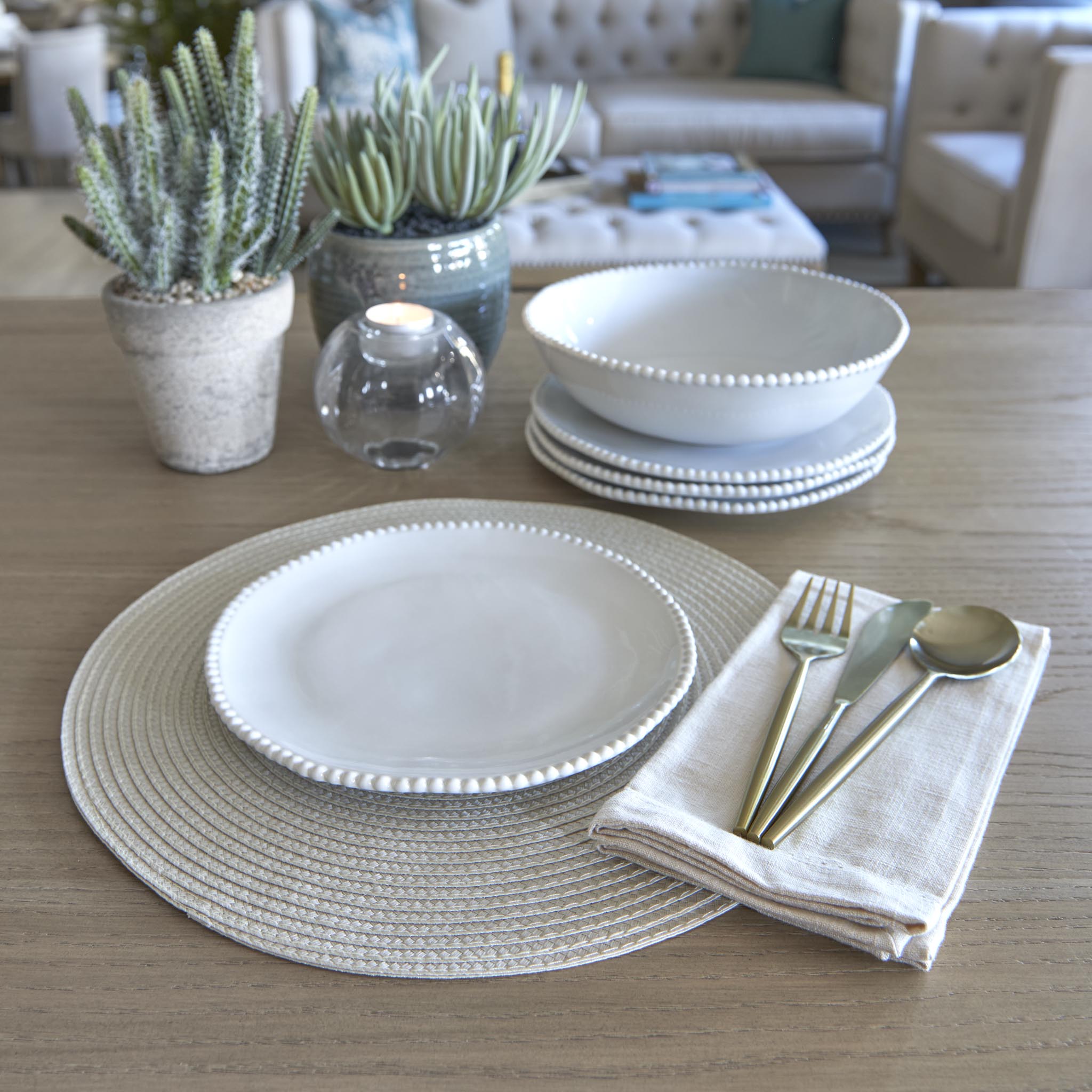The Beaded Plate set of four offers a stylish and timeless design, perfect for any table setting. Each plate features a unique, organic shape with delicate beaded detailing around the rim, adding a touch of elegance. This set of four side plates is ideal for both everyday meals and special occasions. Coordinating pieces are available, allowing you to create a cohesive and refined dining experience.