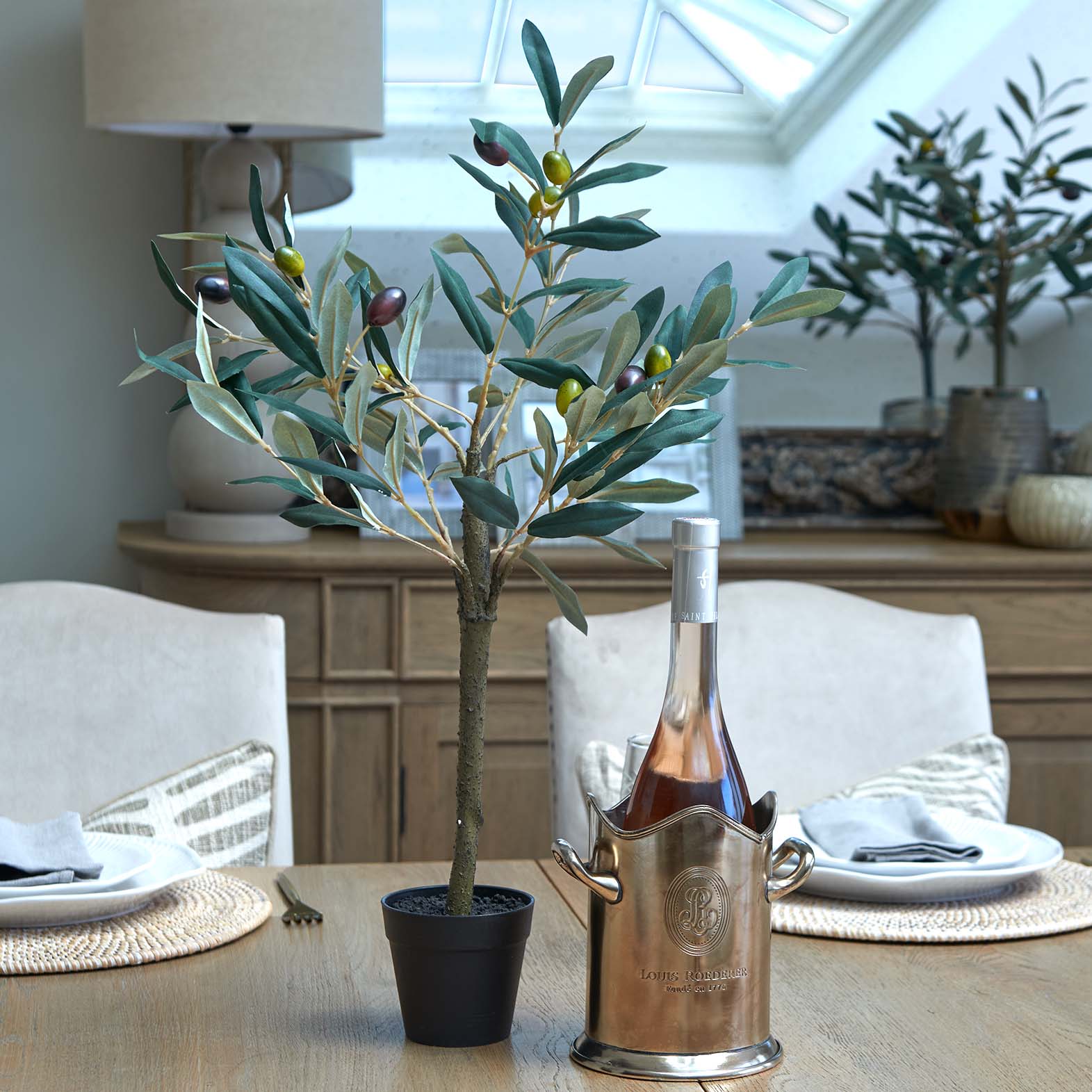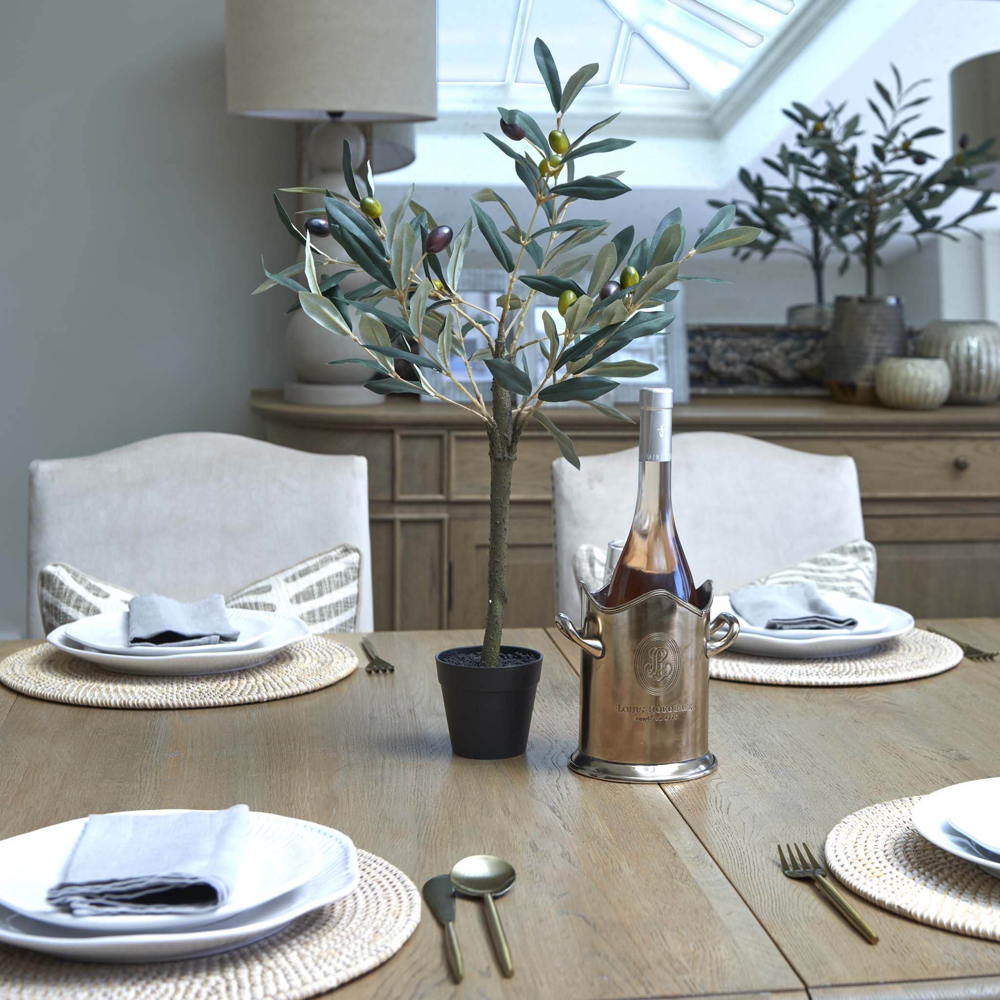 Add a splash of sophistication to your home with our Faux Olive Tree. It's lifelike silvery leaves and charming olives bring a touch of Mediterranean elegance to your home all year round with no maintenance required.