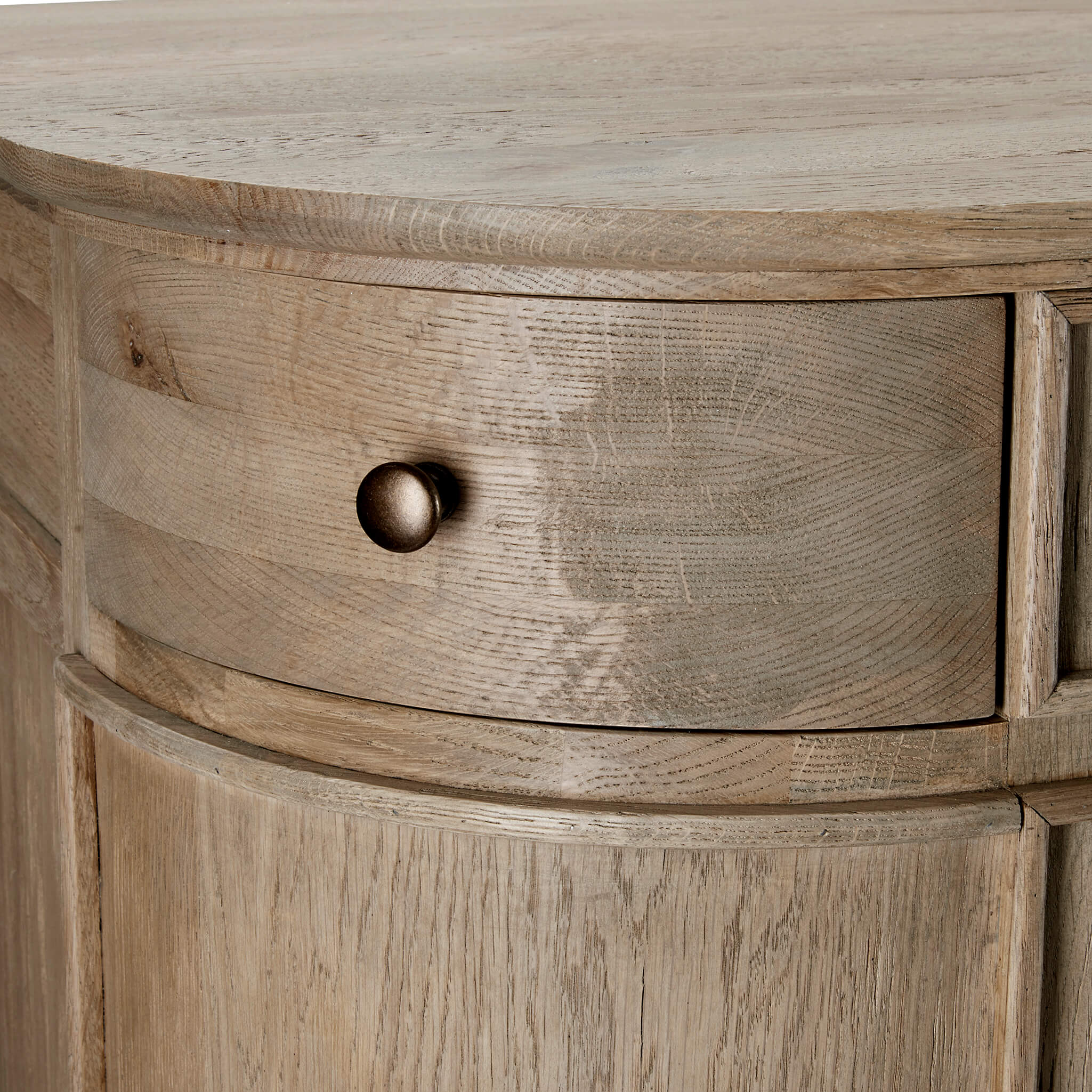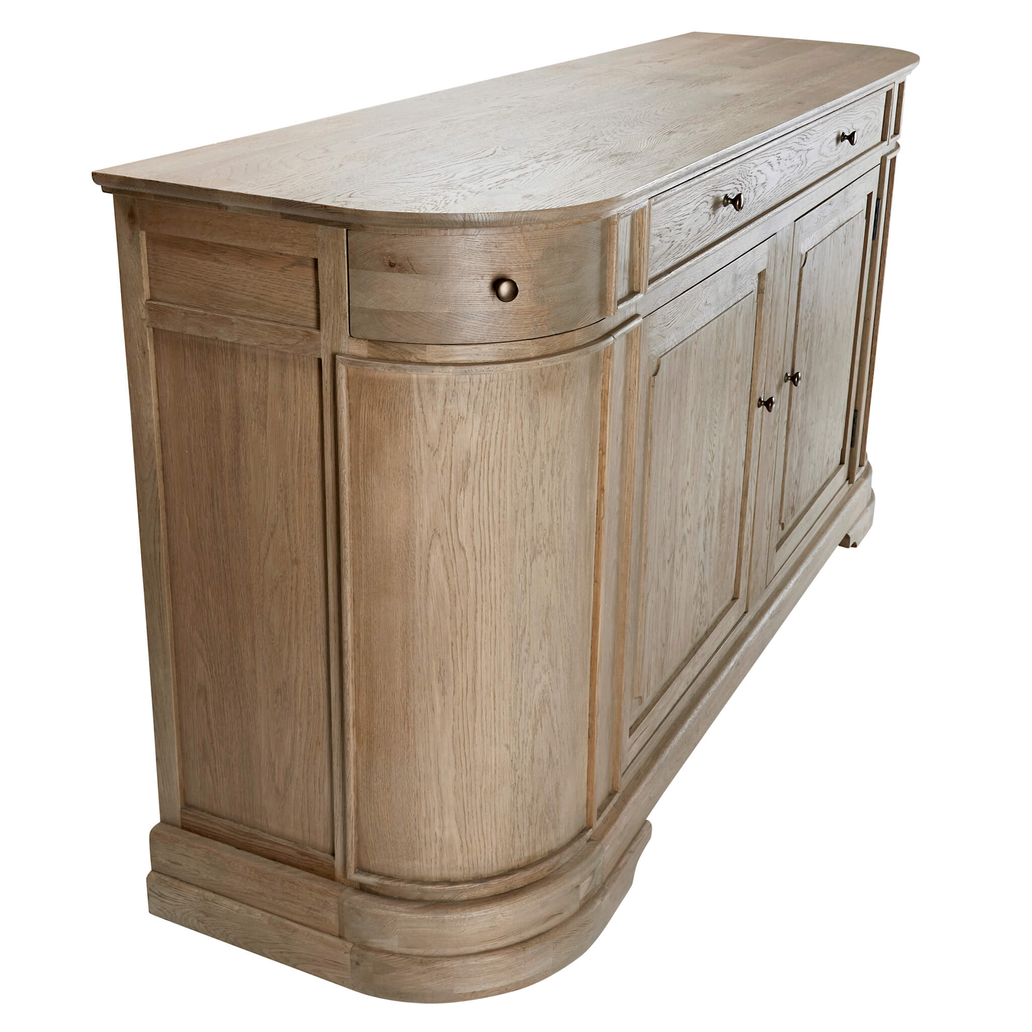 • This sideboard has been lightly wire-brushed to enhance the grain of the wood, giving it a more pronounced appearance and highlighting the unique texture of the oak.