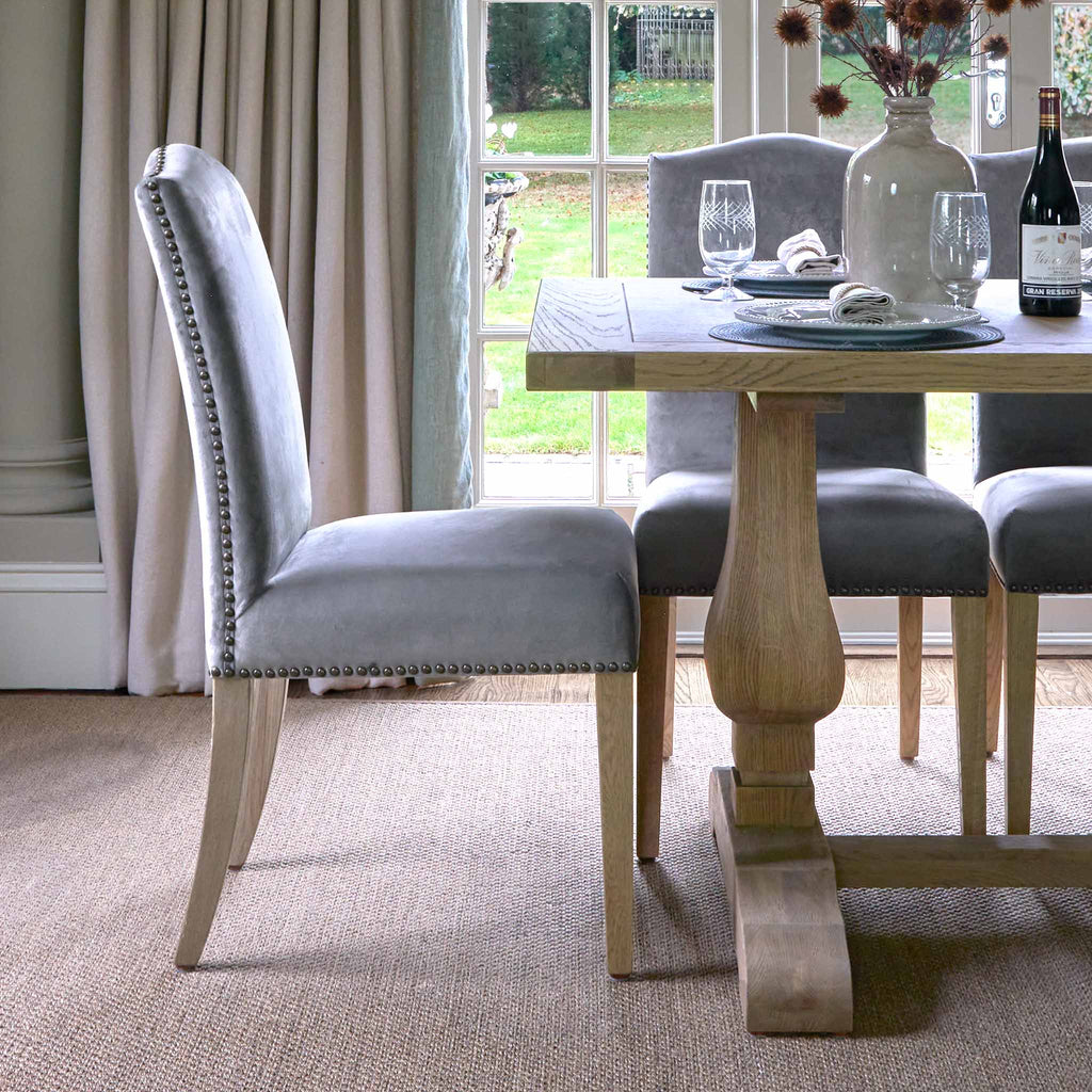 - This dining chair has been lightly wire-brushed to enhance the grain of the wood, giving it a more pronounced appearance and highlighting the unique texture of the oak.
