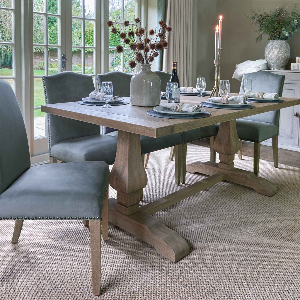 - Handcrafted from solid oak and finished with our signature multi-staged weathered oak finish to enhance the wood’s natural warmth and character.