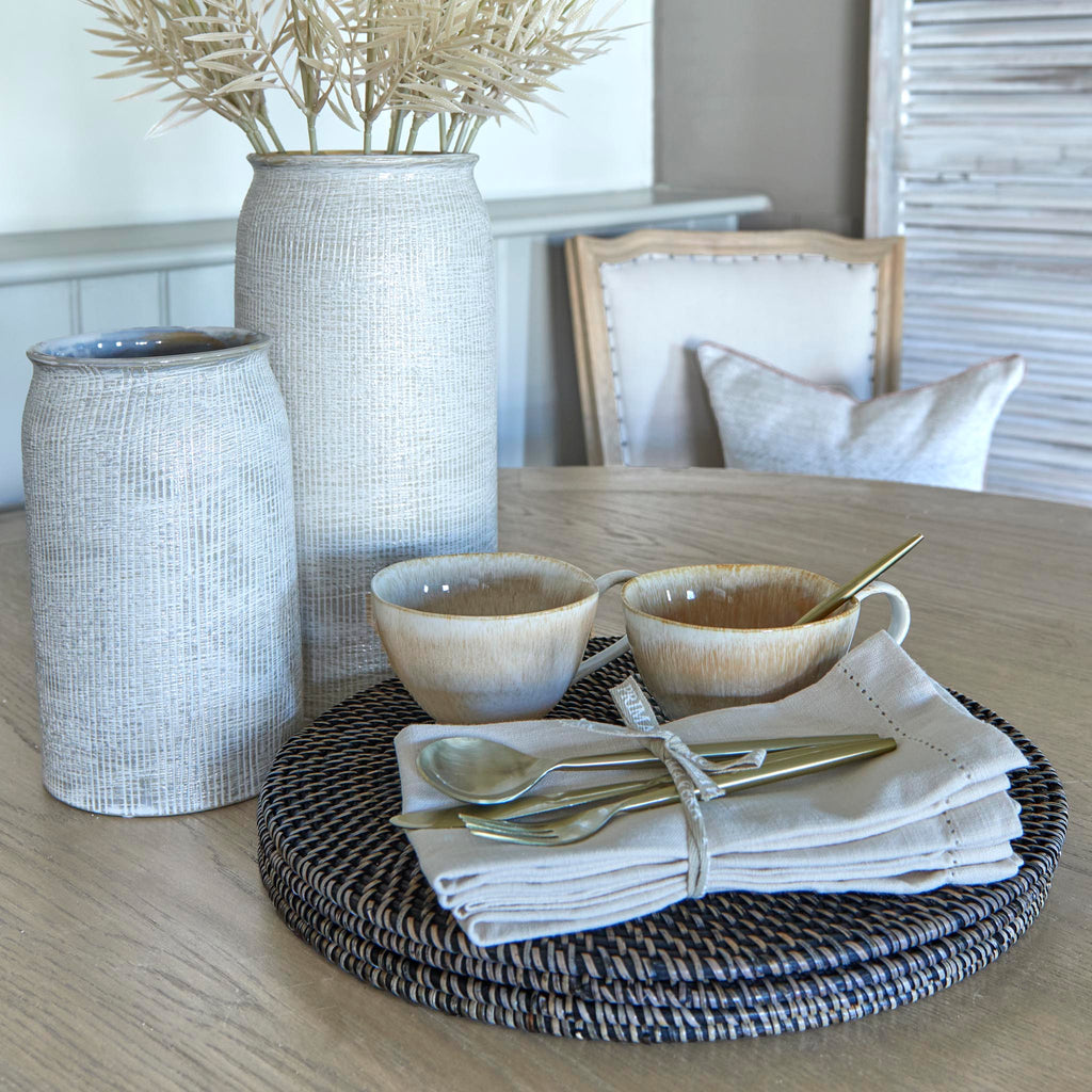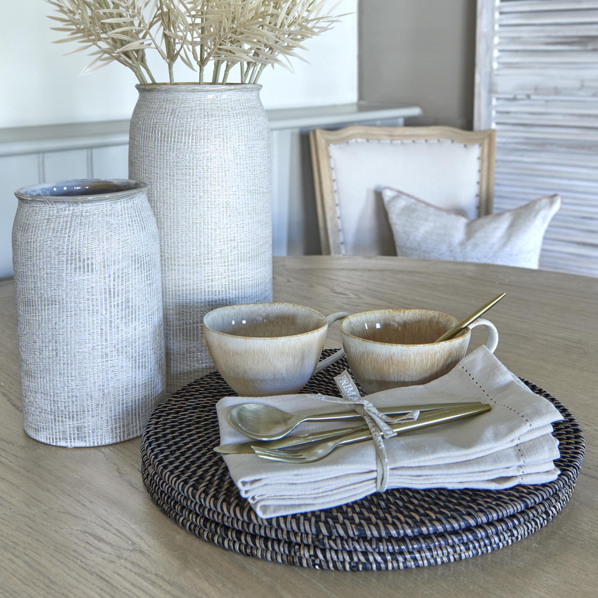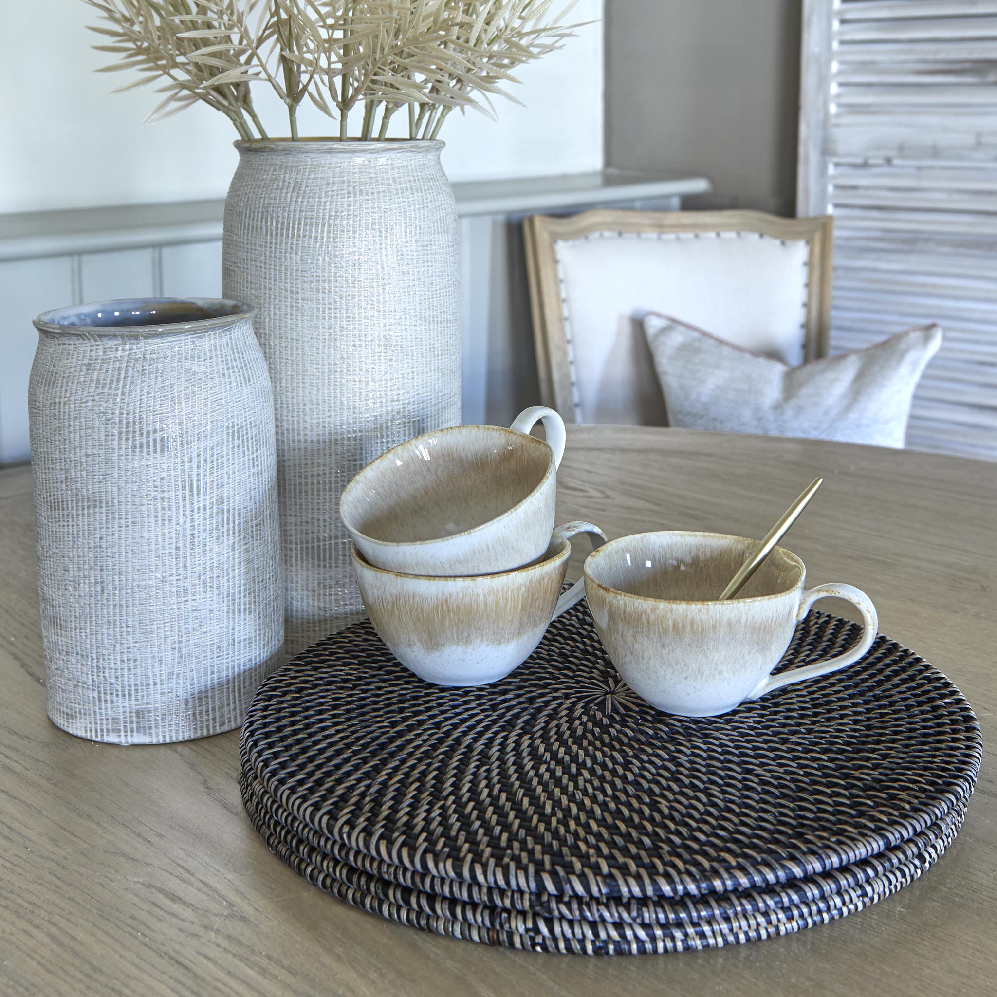 The Reactive Organic Mug Camel set of four offers a stylish and timeless addition to your tableware collection. Each mug is expertly handcrafted and finished with a reactive glaze, giving it a distinct and unique character, as no two pieces are identical. The warm camel tone brings a sophisticated touch that complements both contemporary and classic interiors. This set of four mugs combines quality craftsmanship with a refined design, making it a perfect choice for everyday use or special occasions. Also available in Duck Egg.
