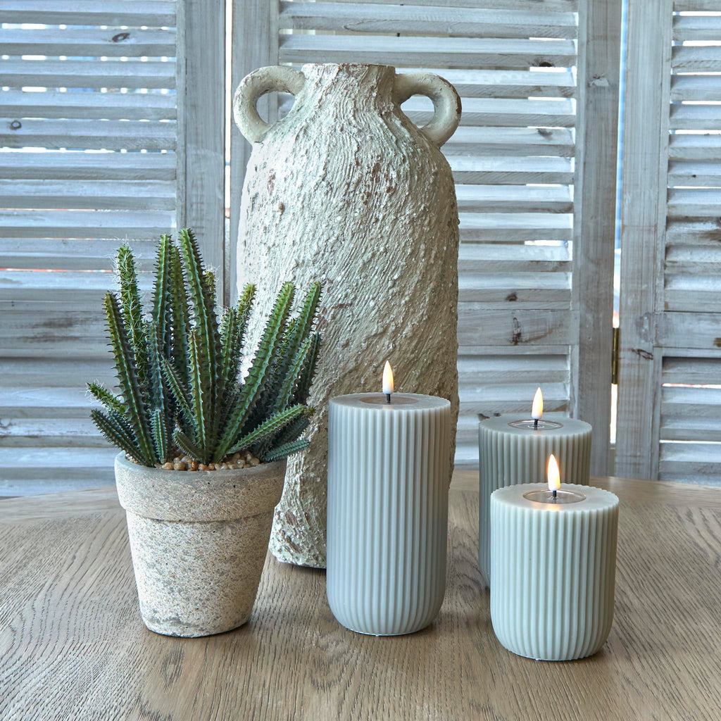 Add a touch of warmth and tranquility to your space with our small Sand LED Stripe Candle. With its soft sand hue and gently textured surface, this faux candle creates a cozy, calming atmosphere. The flickering LED light replicates the soft glow of a real flame, providing ambiance without the worry. Perfect for smaller spaces or as an accent piece alongside larger candles, this small LED candle brings a stylish and safe alternative to traditional candles.